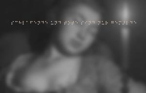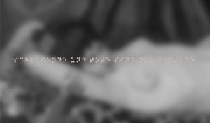 Der Brailletext über den Augen lautet: schlafende und tote sind nur gemälde und bezieht sich auf ein Zitat in Macbeth von William Shakespeare in der Übersetzung von Friedrich von Schiller: Lady Macbeth. Schwache Seele! Gib mir die Dolche. Schlafende und Tote Sind nur Gemälde; nur ein kindisch Aug’ Schreckt ein gemalter