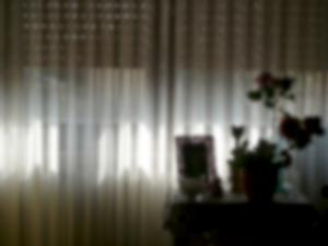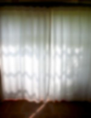 Oft versperren Vorhänge den Blick, in denen sich die Sonne fängt. Schatten lassen Bäume erahnen, Sprossen erzählen von der Bauweise des Fensters selbst. Im Vordergrund erkennen wir Mobiliar, Betten, Stühle, die mal auf eine bürgerliche Wohnkultur, dann auf eine sachlich-zweckmäßige, nüchterne Inneneinrichtung schließen lassen. Sehr unterschiedlich auch die Farben dieser unscharfen Interieurs: Mal strahlen sie Kühle aus, in ihren Grau- und Weißtönen – bei einem anderen Bild spiegelt ein Vorhang warme Rottöne in den Raum. So unterschiedlich die Farbfotografien sind, sie einen sich im Sujet und auch in der Gestaltung: Stets erhaschen wir einen Blick auf ein von außen hell erleuchtetes Fenster in einem eher dunklen Innenraum. Stets ist der Grad der Unschärfe in etwa gleich.