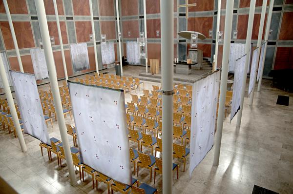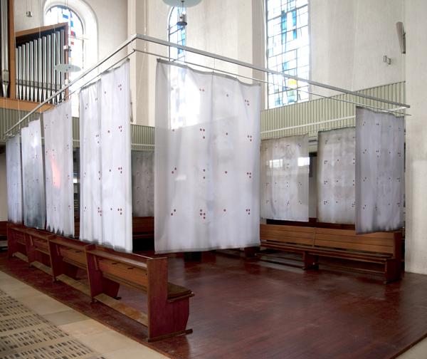Wer die dreizehn Tücher in einer der Kirchen sehen wird, kann dieser Spur der Worte folgen und sich von ihr ins Nachdenken über den Zusammenhang von Wort und Bild bringen lassen.